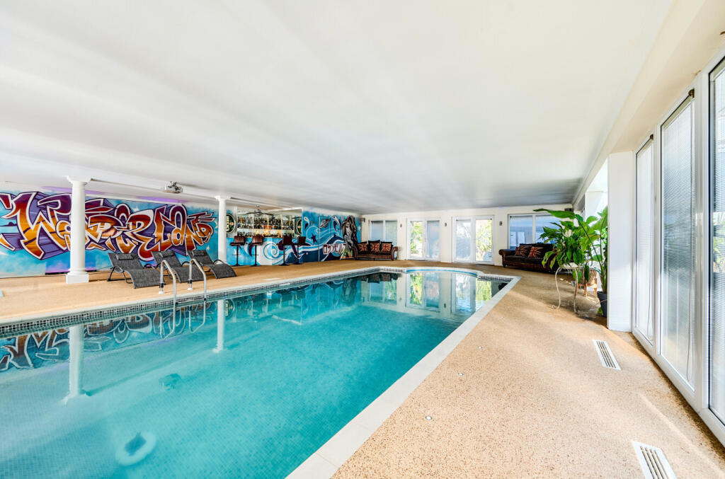 Set inside 2.5 acres, it has all the posh options you’d anticipate, however with entertaining amenities on the subsequent stage. The true showstopper is the connected swimming pool complicated that includes a big celebration room, totally outfitted bar, built-in sound system and atmospheric temper lighting. A number of units of French doorways open onto superbly landscaped gardens with expansive patio areas, scorching tub and BBQ area.