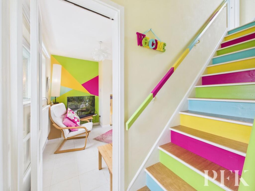 This semi-detached residence in Little Broughton is a breath of recent air. Positioned on a beneficiant nook plot only a quick drive from Cockermouth and the beautiful Lake District, the property is outlined by its delightfully assured color decisions all through. With a vibrant blue exterior and daring interiors that includes greens, yellows, pinks and blues on function partitions and stairs, it’s sure to carry pleasure to all those that discover it.