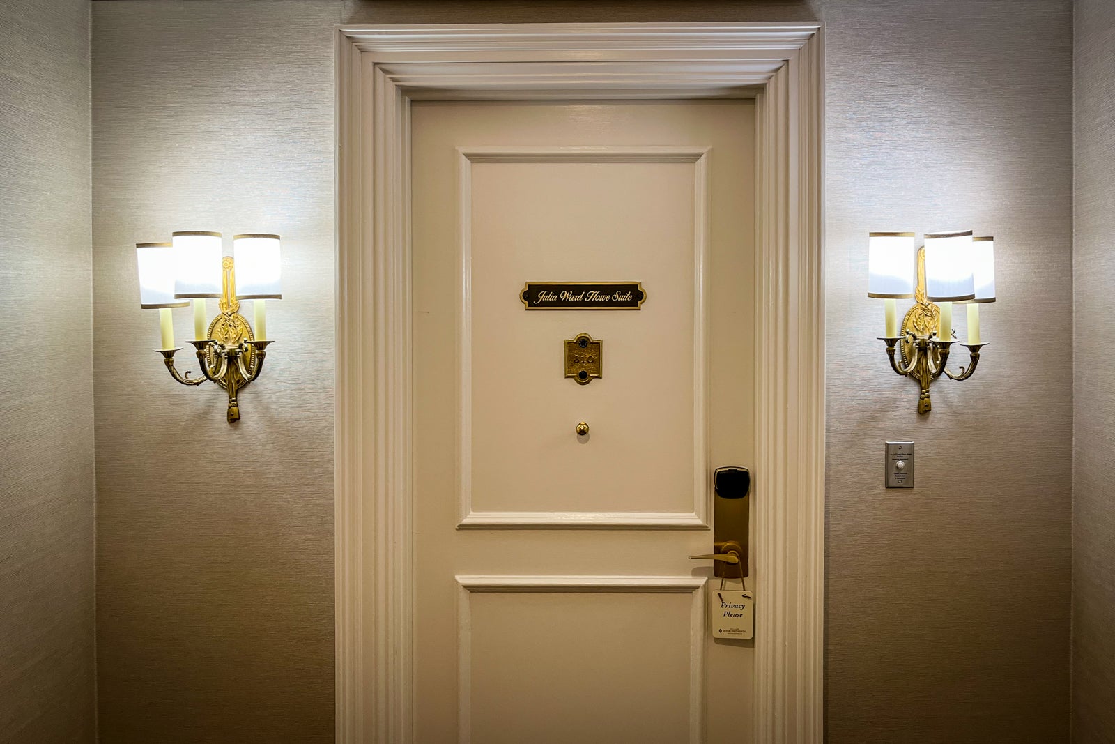 For our late-August go to, Bailey and I have been assigned the Julia Ward Howe Suite within the southeast nook of the third flooring. Measuring 1,100 sq. toes, the suite — named for the Civil Conflict-era abolitionist and author greatest recognized for writing the “Battle Hymn of the Republic” — options two entrances: one subsequent to the elevators and one other across the nook on the finish of a discreet corridor.