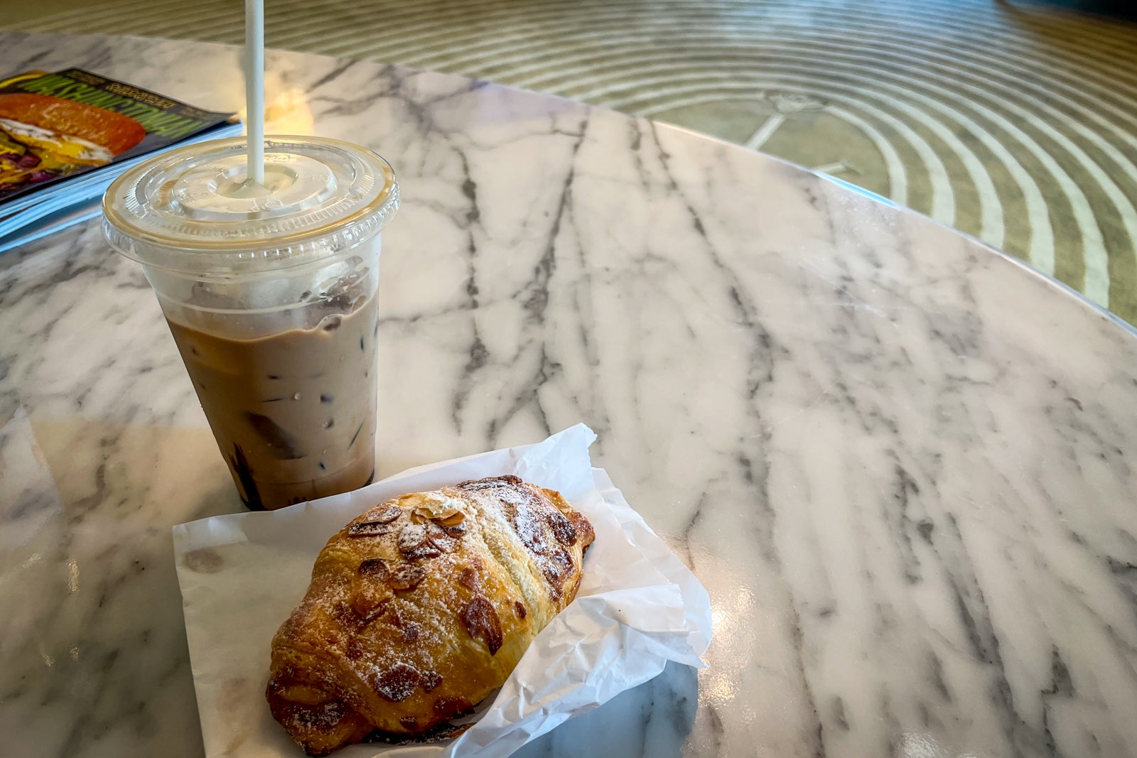 To make use of up the resort price’s day by day $20 food-and-beverage credit score on the second day of my keep, I additionally visited Le Cafe for a noon snack, selecting a flaky almond croissant (usually $5.75) and an iced mocha (usually $6.50). Every glad my yearning for one thing candy earlier than dinner.