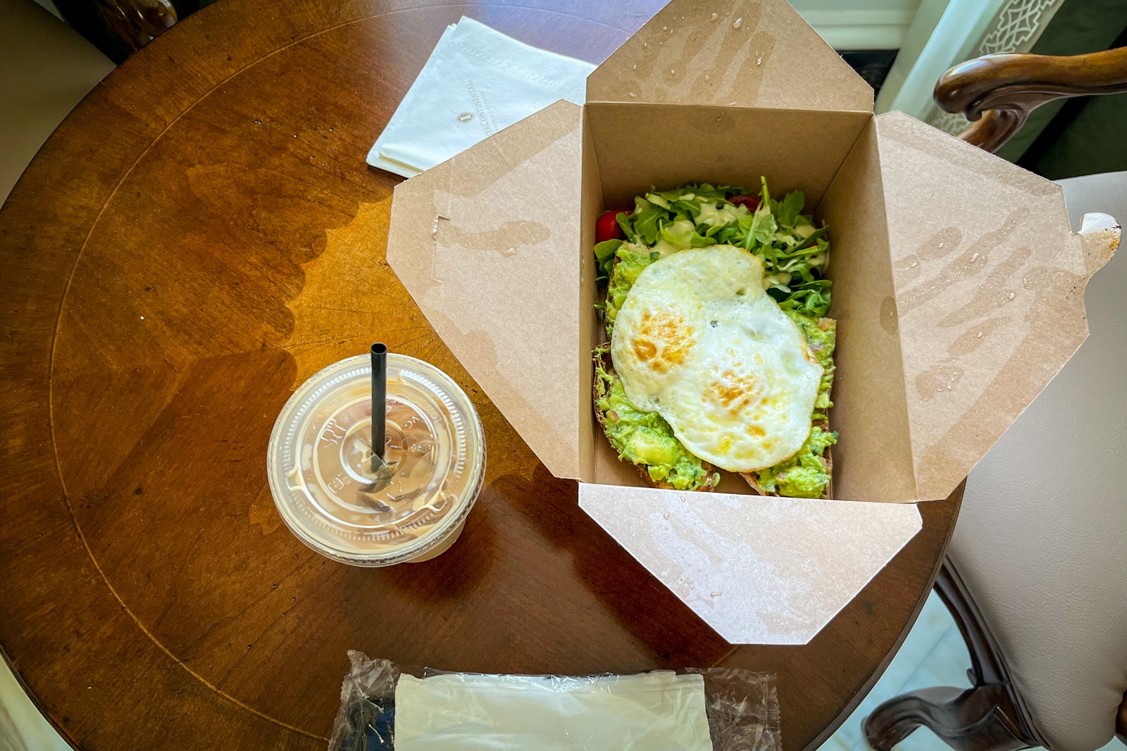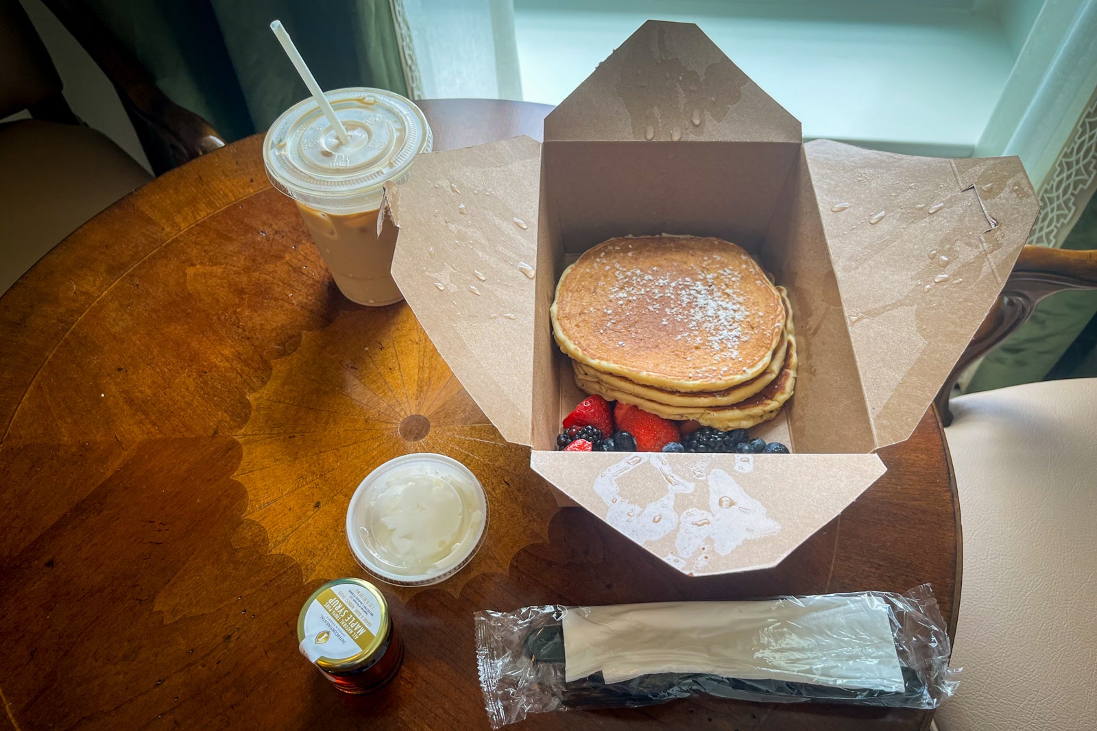 I selected the avocado toast with two over-easy eggs (usually $21) and an iced latte (usually $6) the primary morning, which was a tasty, mild (however nonetheless satisfying) meal to get pleasure from on a sizzling late-summer day. On my remaining morning, I went with a stack of conventional buttermilk pancakes (usually $19) to accompany one other iced latte and liked how the previous was vanilla-forward in taste.