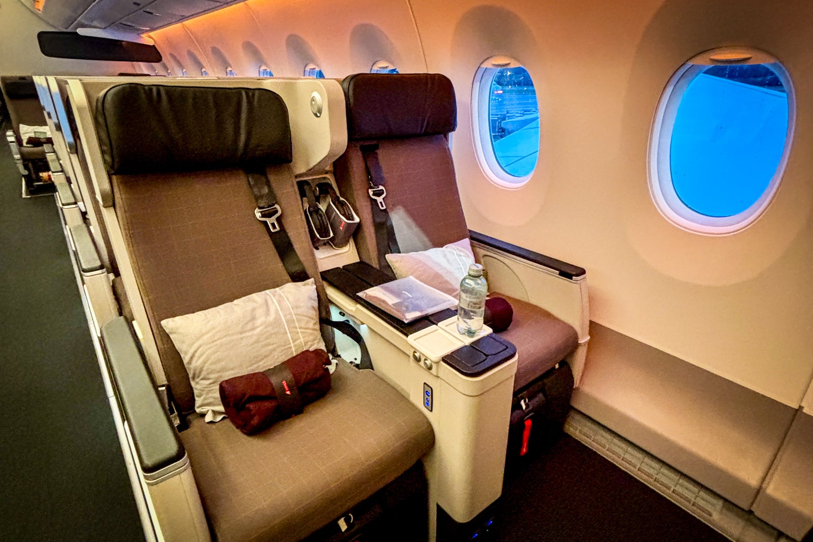 The 12 Privateness Seats are traditional enterprise seats alongside the window, reasonably than the aisle. That offers passengers a bit extra distance from the aisles — and, thus, a bit extra privateness.