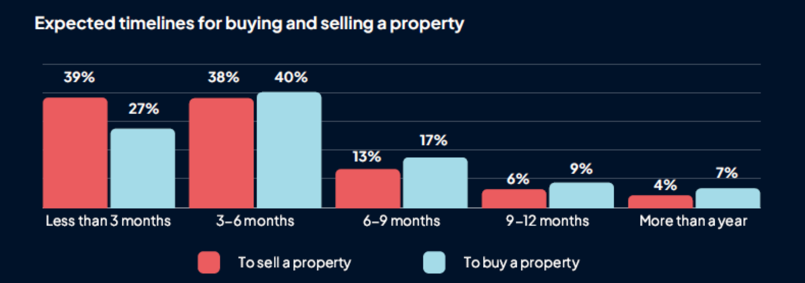 Amongst these seeking to promote a property, 51% of all respondents, 4 in ten (39%) count on to obtain a suitable supply inside three months, whereas the identical proportion consider this may occur in three to 6 months (38%). Simply over one in ten (13%) predict they’ll settle for a suggestion inside six to 9 months and 6% say inside 9 to 12 months.