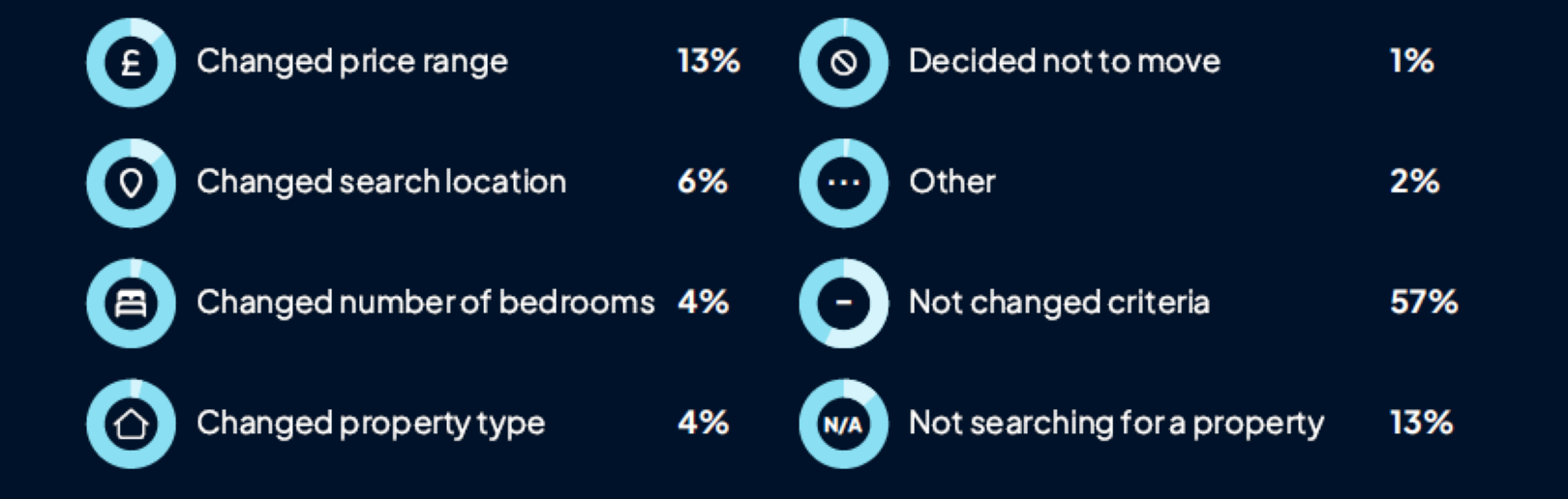 At first of this 12 months, the Financial institution of England’s base price was set at 4.75% however has since dropped to 4%. In response, 30% of property In response,30% of property seekers say they’ve adjusted their search standards. The most typical change has been in searchers’ value ranges (13%), whereas 6% have modified the situation of their search and 4% have altered the variety of bedrooms of their potential properties. Some respondents deciding on “different” defined they’d determined to hire somewhat than purchase.